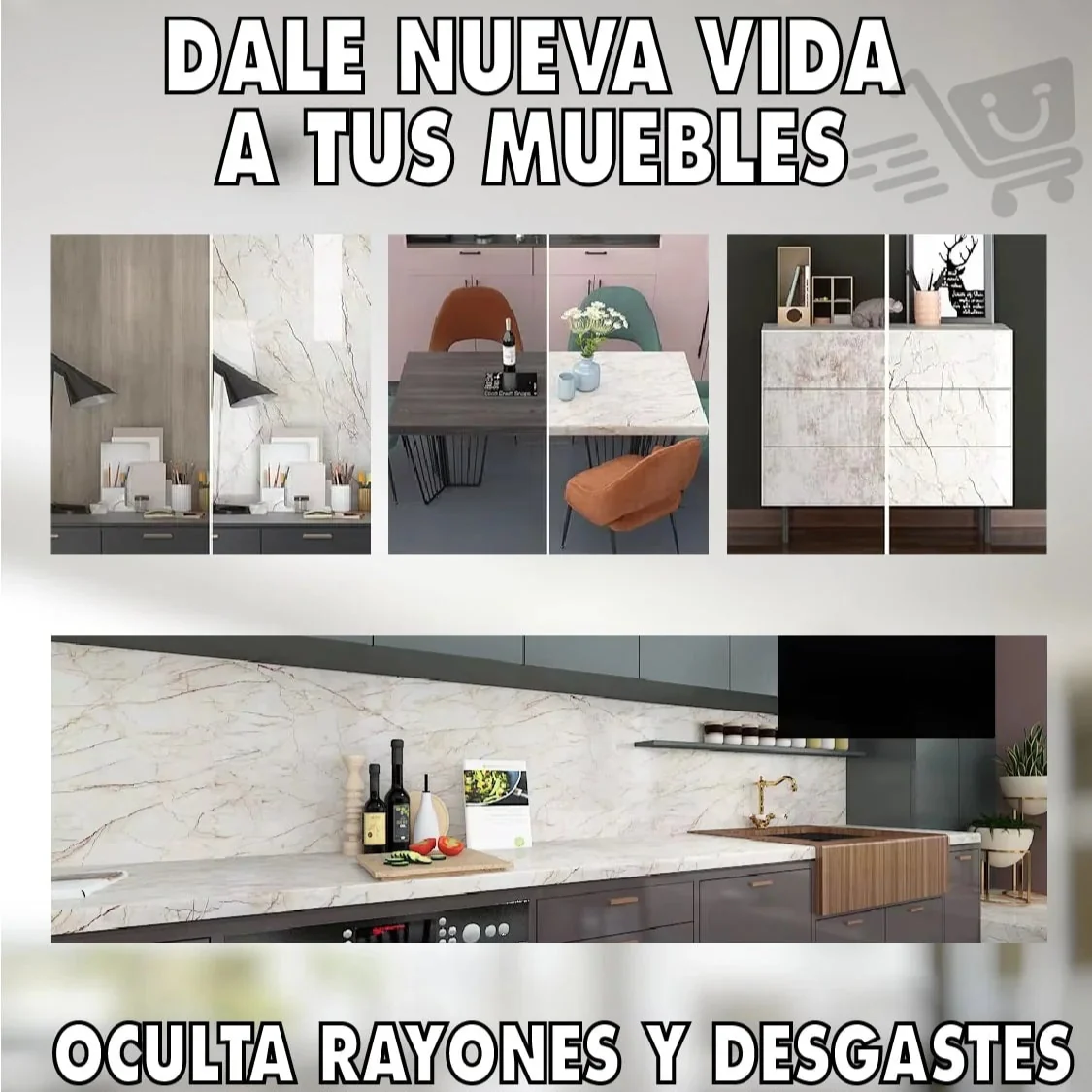 Con este papel adhesivo tipo mármol, dale un acabado moderno y elegante a muebles, paredes, encimeras y más, sin necesidad de renovaciones costosas.