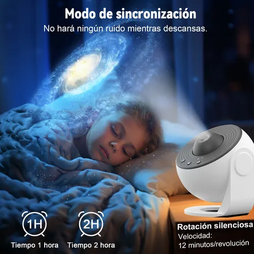Su luz nocturna suave crea un ambiente tranquilo y reconfortante, perfecto para dormir o meditar. El temporizador automático te permite olvidarte de apagarlo. Dormirás acompañado de un universo lleno de estrellas.