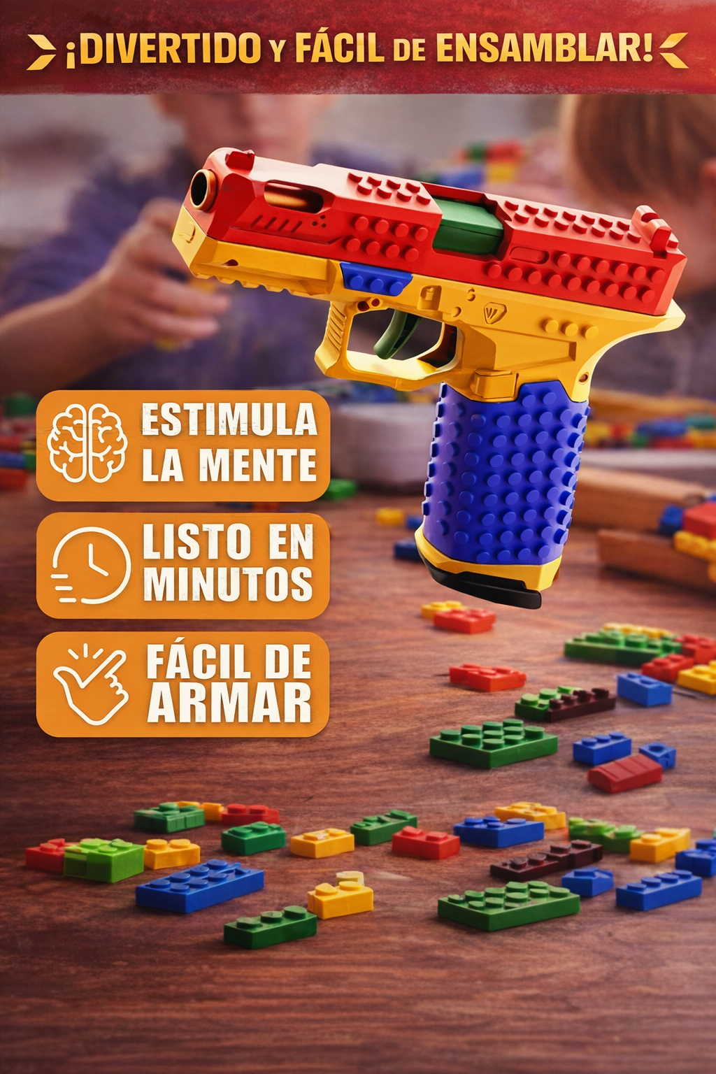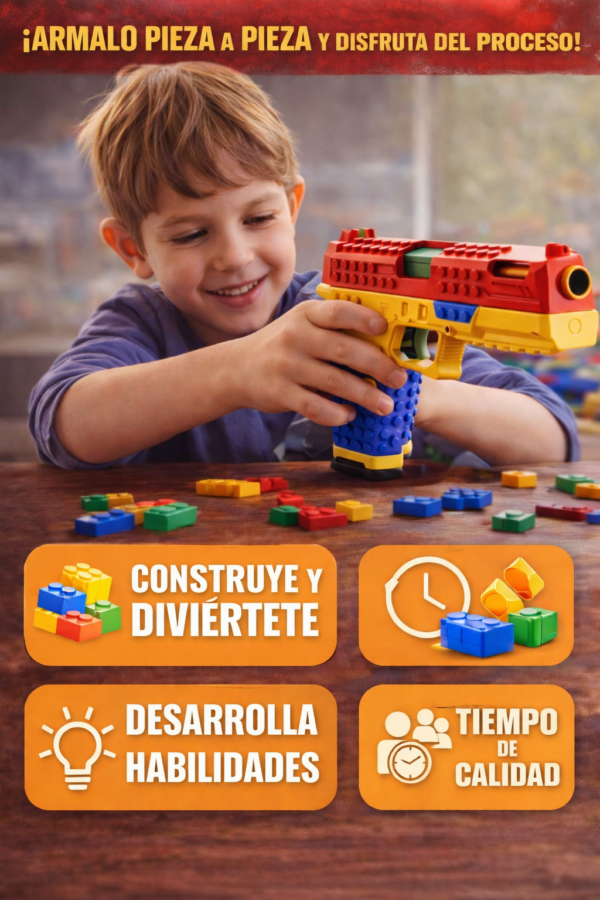 Despierta la creatividad con su sistema armable tipo bloques, permitiendo que cada usuario construya su propia pistola paso a paso. No es solo un juguete, es una experiencia de ensamblaje que desarrolla concentración, paciencia y habilidades motoras.