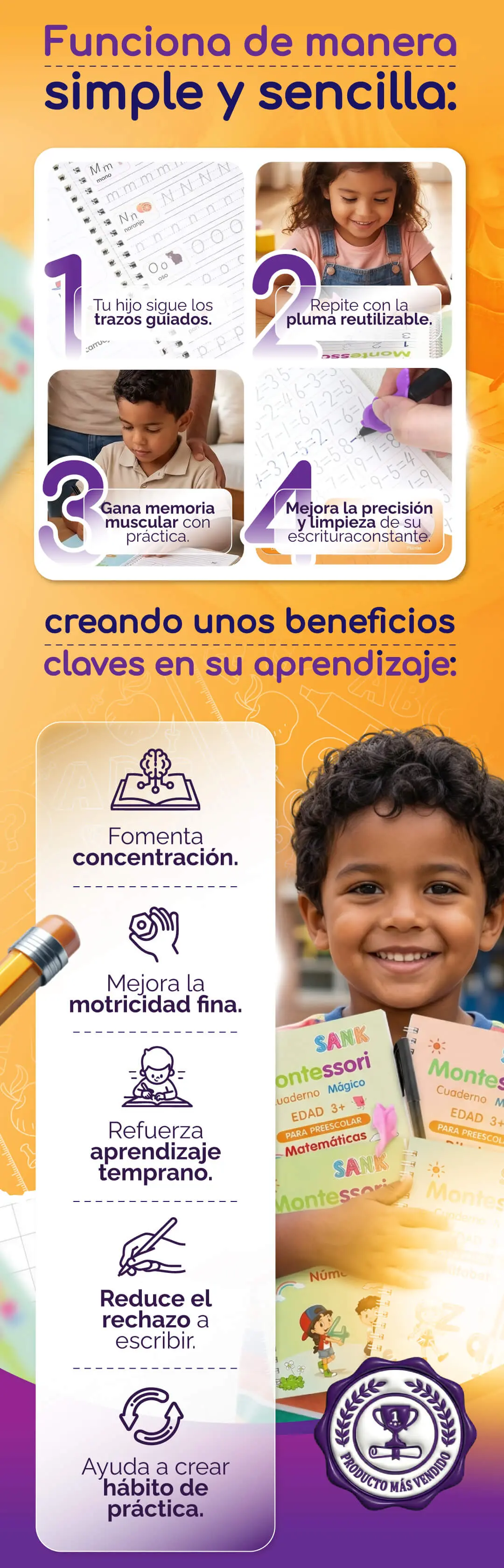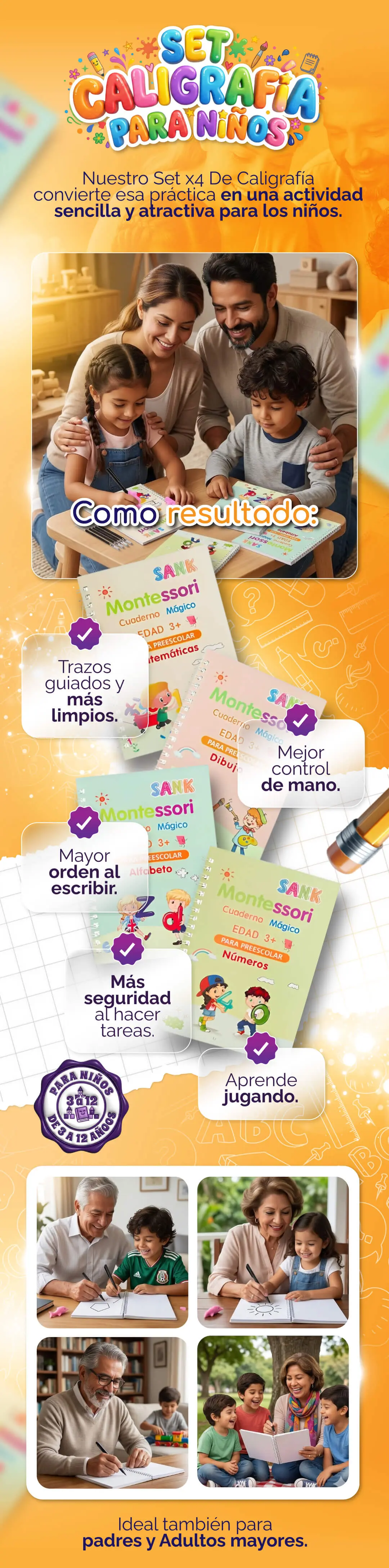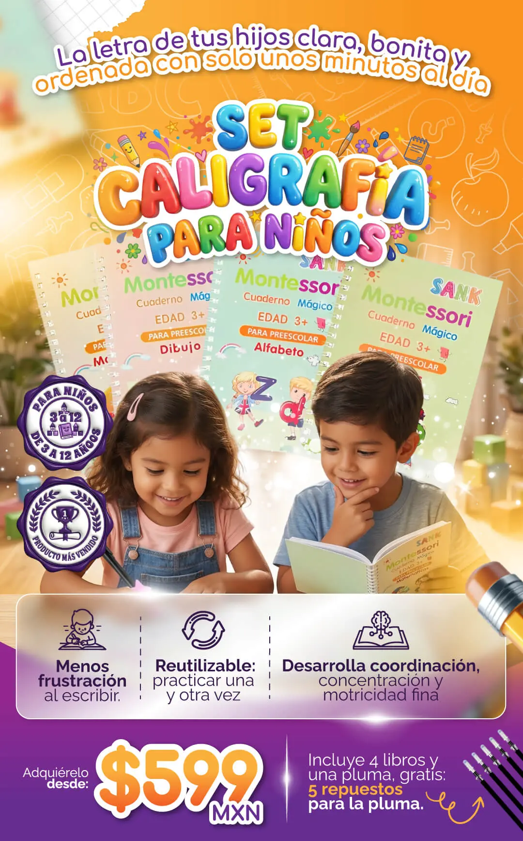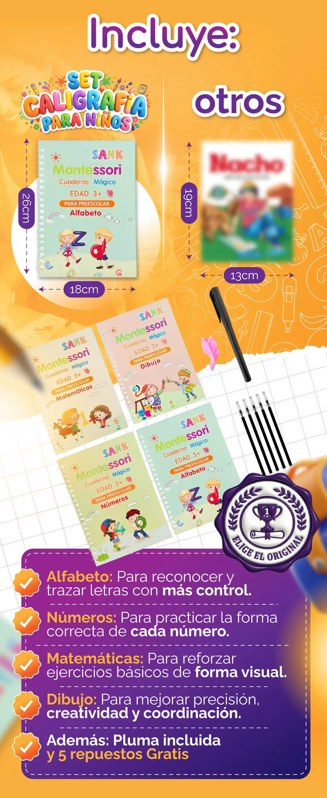 Ayúdalo a mejorar su escritura, números y trazos con nuestro set de 4 libros de caligrafía: fácil, divertido y en solo unos minutos al día.