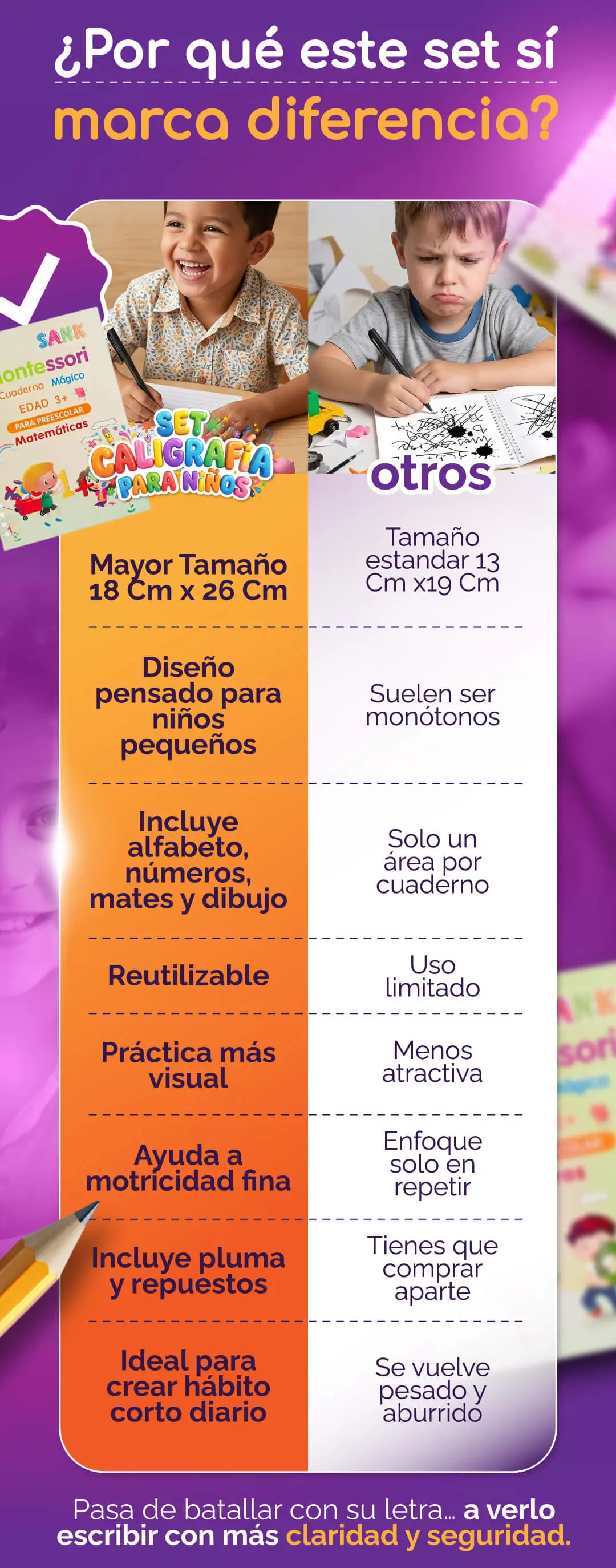 A diferencia de otros materiales que terminan olvidados, nuestro set x4 de caligrafía combina aprendizaje y entretenimiento en una sola herramienta.