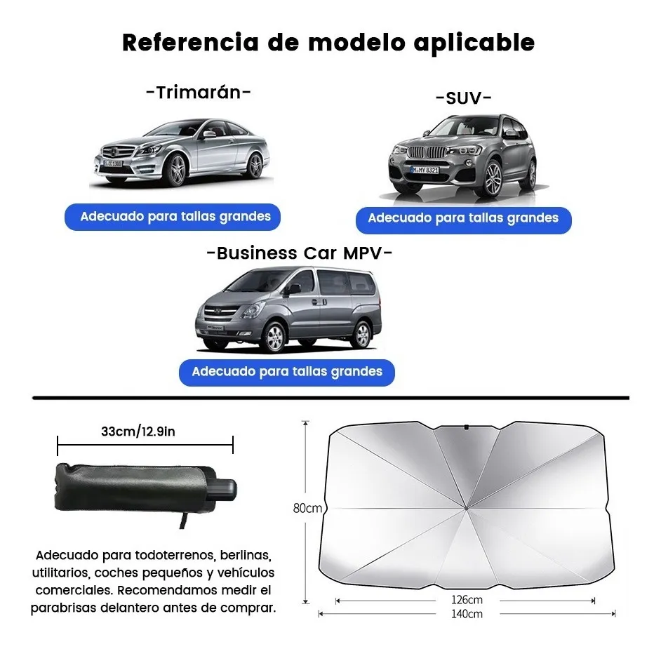 ✔️ Dimensiones: 140 x 80 cm – cobertura amplia para parabrisas