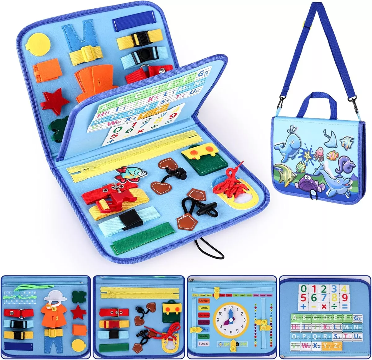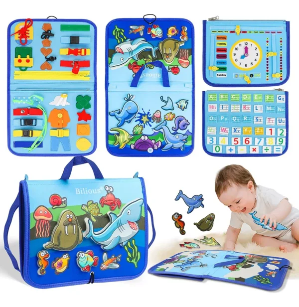 Este tablero sensorial Montessori combina juego y educación, enseñando habilidades esenciales mientras los niños se divierten. Es ideal para estimular el aprendizaje autodirigido y mantenerlos entretenidos y enfocados.