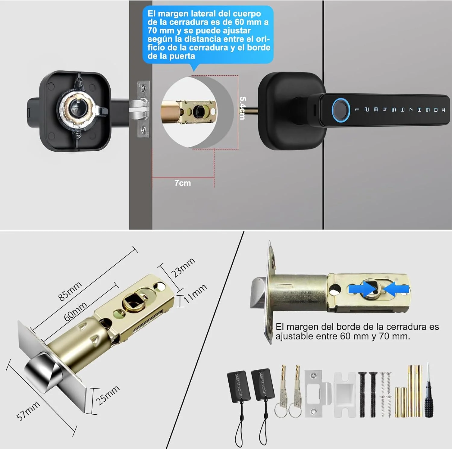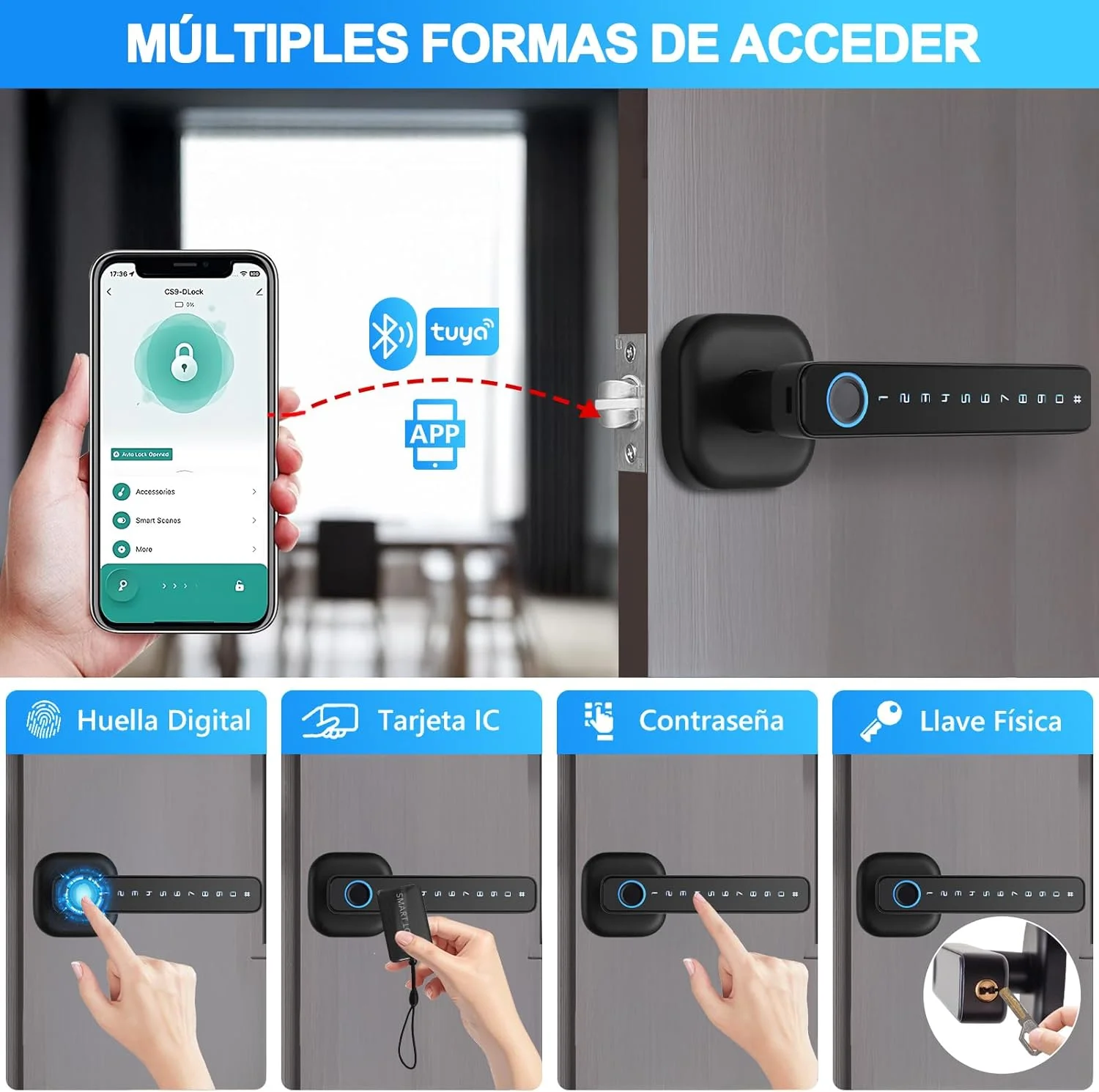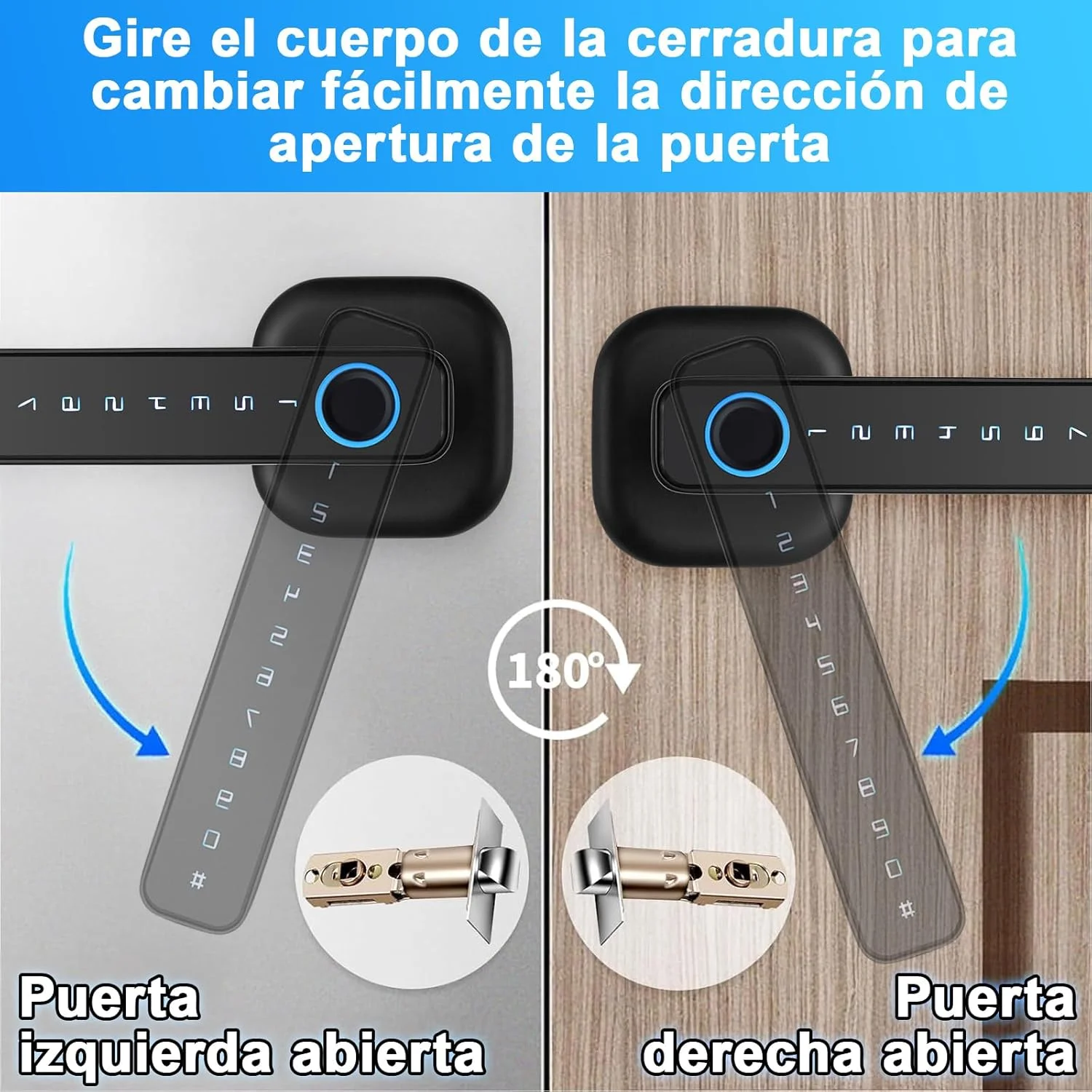 ✔️Función de bloqueo automático tras cerrar la puerta, y alerta de batería baja con puerto USB de emergencia.